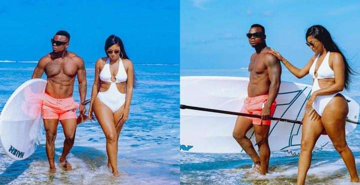 In the photos, the two lovebirds are seen enjoying at the shore of some beach, feeling the oceanic breeze. He then captioned the photos with two heart emojis which represents romantic love.