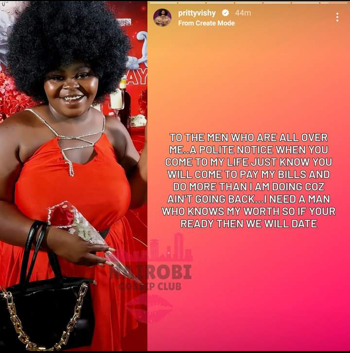 Kenyas socialite Pritty Vishy has given terms and conditions under which any man who hunts for her heart must fulfill in order to win her love.